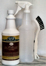 Heavy Duty Tile & Grout CleanerTile & Grout Cleaner KitIt's a powerful, heavy duty tile and grout cleaner kit! Comes complete with a bottle of concentrated grout & tile cleaner, spray bottle with a trigger sprayer AND a heavy duty grout brush. Great for Tile, Grout, Granite, Marble, Onyx, Travertine, Limestone... ALL Natural Stone!
